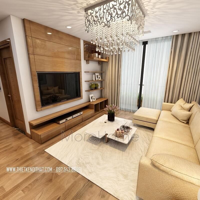 Bàn thờ treo tường gỗ tự nhiên được mang đến không gian thờ cũng tâm linh trang nghiêm ngay tại phòng khách của căn chung cư