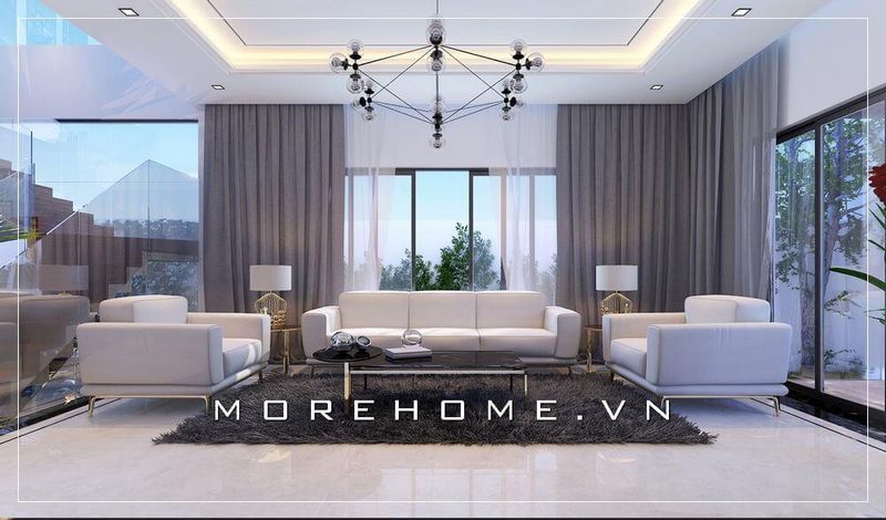 Không gian sang trọng tạo kết hợp đồ nội thất hiện đại tạo vẻ đẹp độc đáo cho phòng khách biệt thự, nhà phố.