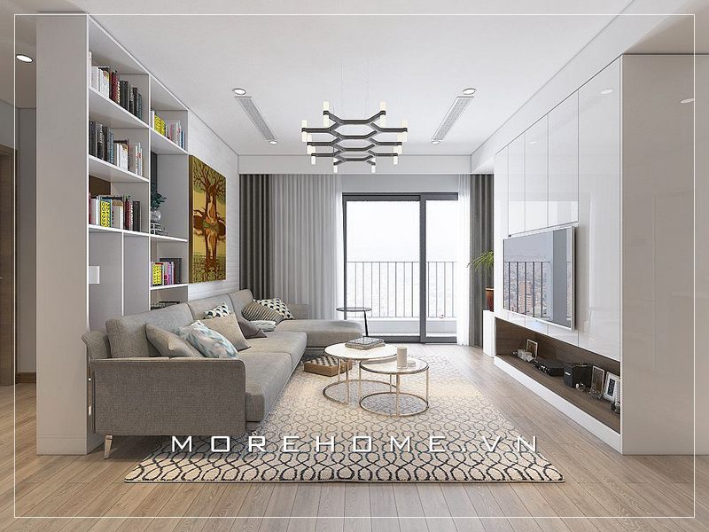 Morehome đã thực hiện sàn gỗ tự nhiên cho phòng khách tại công trình Hà Nội.